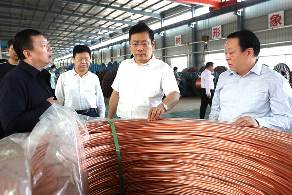 丁小强在金广丰线缆有限公司调研企业生产经营情况。 记者 雷哲侠 摄