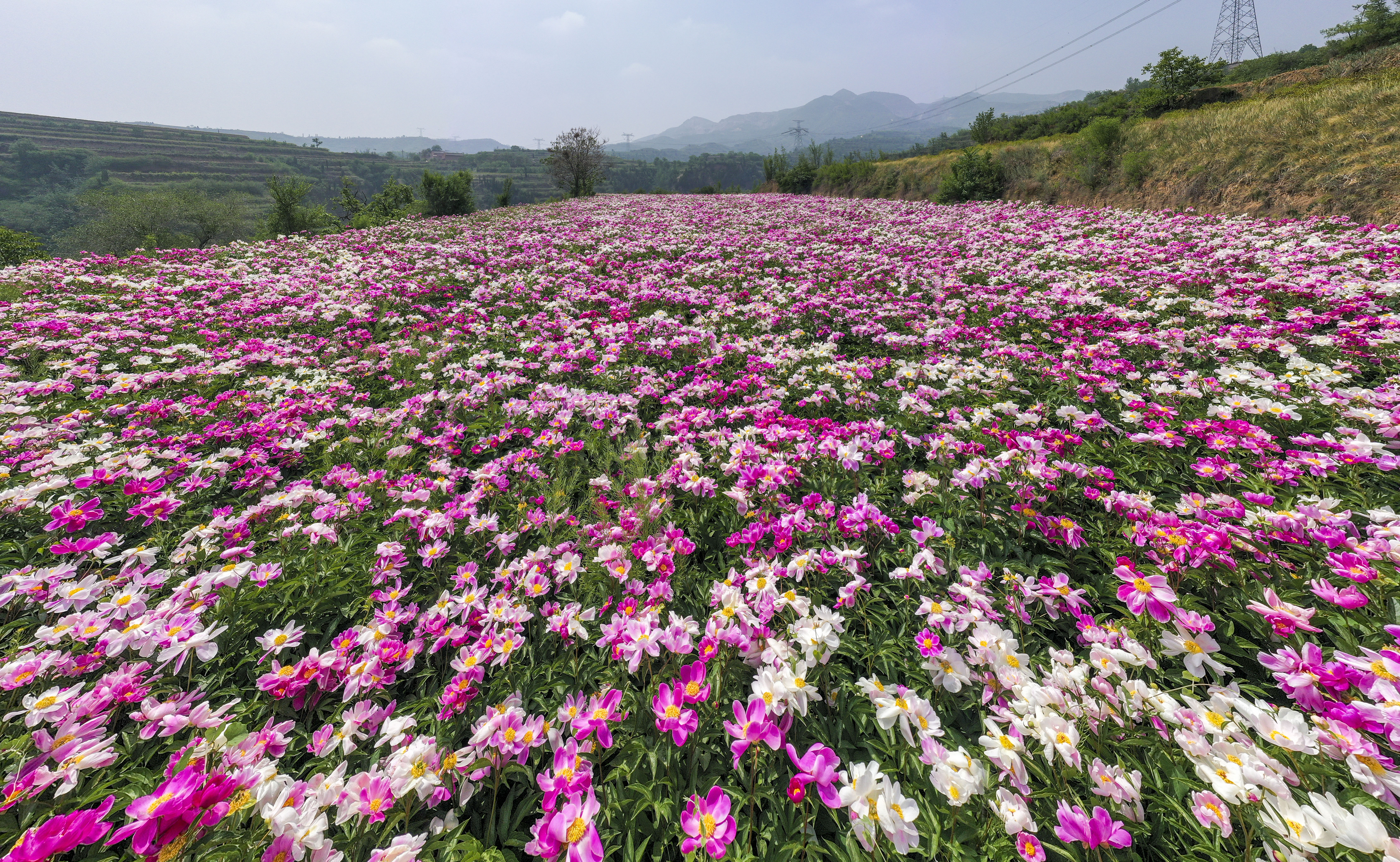 5月5日,稷山县太阳乡刘家坪村上万株芍药花盛开。 近年来,该县太阳乡因地制宜调整农业产业结构,积极扶持广大农户种植中药材,致力于打造一个“万亩花卉药材基地”,以中药材特色产业助力乡村振兴,带动村民增收致富。(史云平 史港泽)