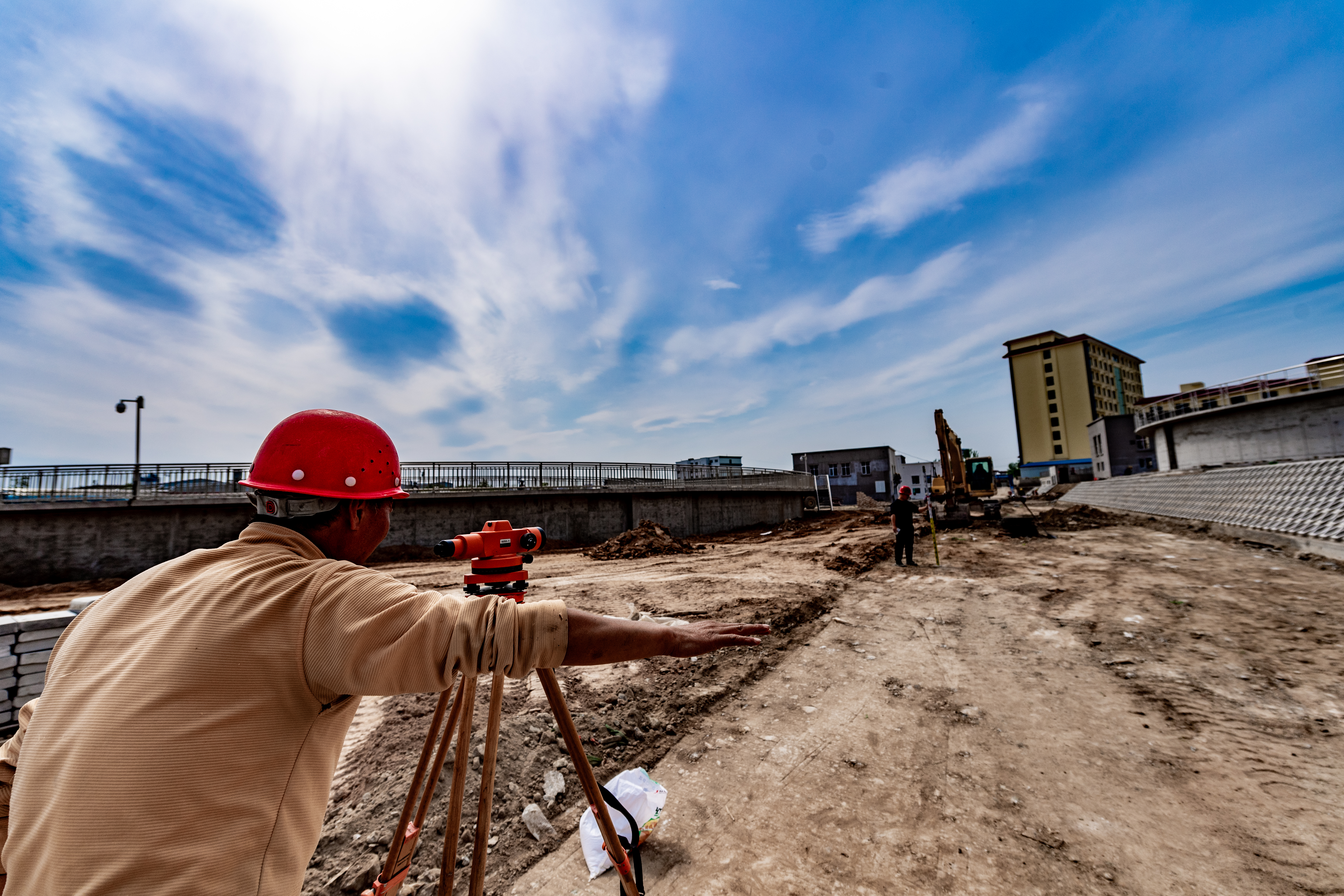 厂区各个主要道路工地上,大型挖掘机进行清土作业,工人们铺设路面、测量方位……进行着路面建设和场地绿化的准备工作。