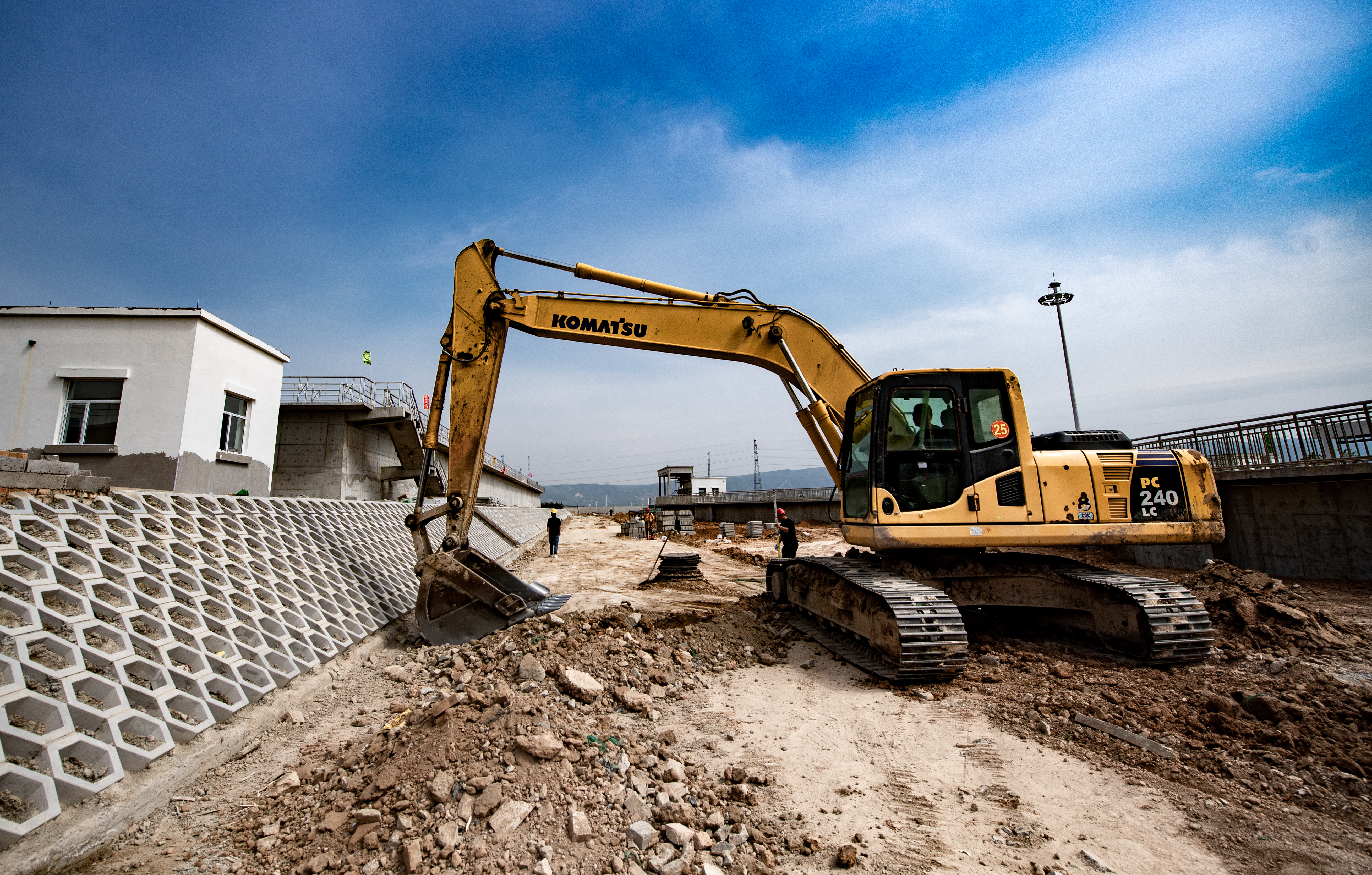 4月24日,运城经济技术开发区城东污水处理厂扩建项目施工现场,工人穿梭、机器轰鸣,一派热火朝天的景象。