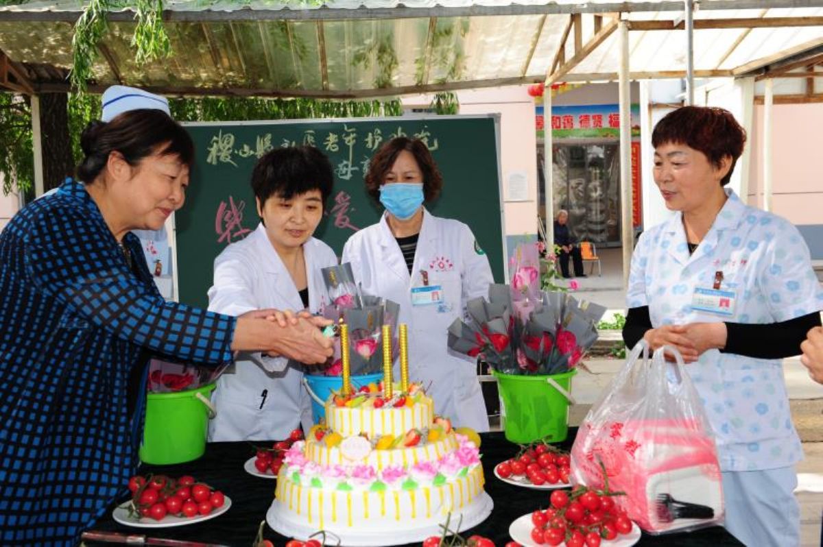 5月10日,稷山县社区老年护理院为老人点亮生日蛋糕。