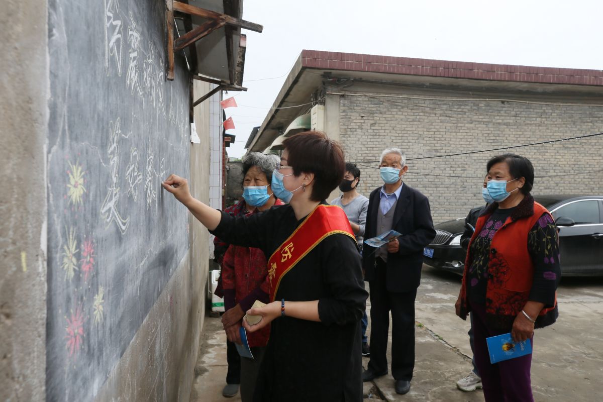 ▲工作人员在临猗县耽子镇南畅村,通过宣传资料讲解防灾减灾救灾知识。