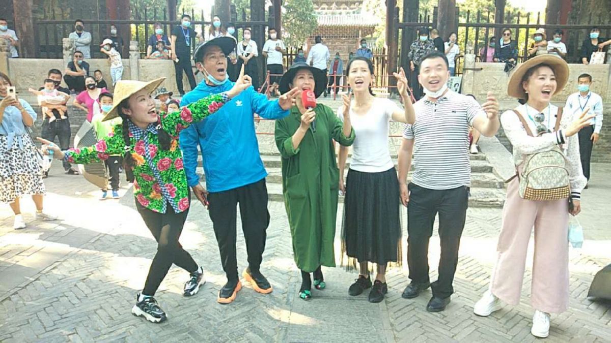 在整个游览期间,歌手们并没有单纯地只是进行游览,而是通过各种方式进行了充分的互动,以不同的表现形式充实了推介内容。结义亭里,大家穿上汉代将士服装,模仿“桃园三结义”的场景演得过瘾;雉门前,目睹唢呐老艺人的精彩表演,“草帽姐”情不自禁地和着节奏扭起了大秧歌;春秋楼前,聆听到关于古树的故事,歌手们纷纷与它合影留念……这些不经意间自然呈现出来的花絮,从多个侧面以更加亲和的姿态和方式,展示了关帝庙景区的魅力。