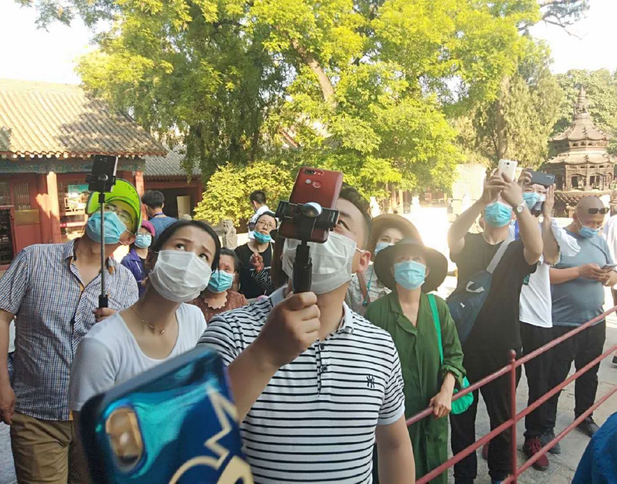 此次活动邀请到了20余位网红进行现场跟团直播。这些网红的粉丝数量最少都在20万以上,最多的有三四百万。在整个活动过程中记者注意到,网红们手持自拍杆,认真地聚焦景区的每一处值得分享的细节,同时不断地在回答直播间网友的各种提问,“主播在哪里呀?”“我是在山西运城的解州关帝庙”……这一问一答,回应了网友的诸多关注点,也进一步宣传了景区。