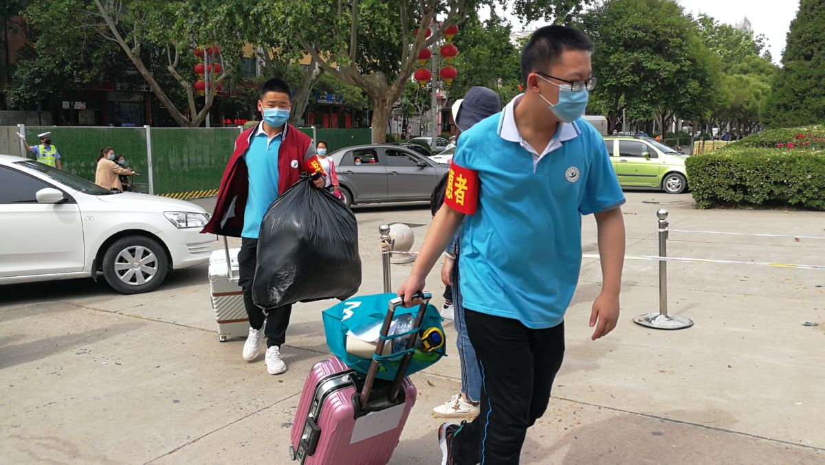 在运城学院附属中学当天的报到现场,记者看到的也是秩序井然。按照要求,家长不允许进入校园,因此每一名学生报到后,拉行李、搬被褥和书本等杂活就被该校师生志愿者团队“承包”了,让同学们感受到返校复课后久违的温暖。