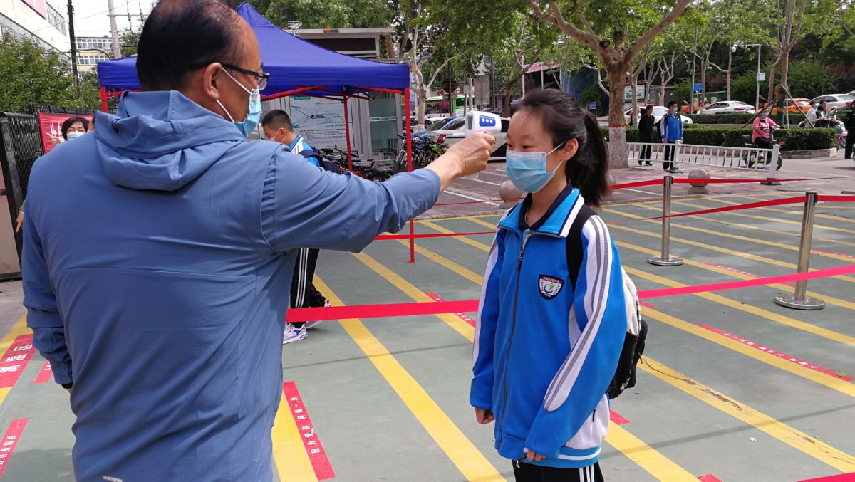 按照错峰入校要求,当日,市实验中学安排初二年级学生在上午分批返校,初一年级在下午返校。当天,经过严格的体温测量后,该校各个年级的4000余名学生顺利返校复课。