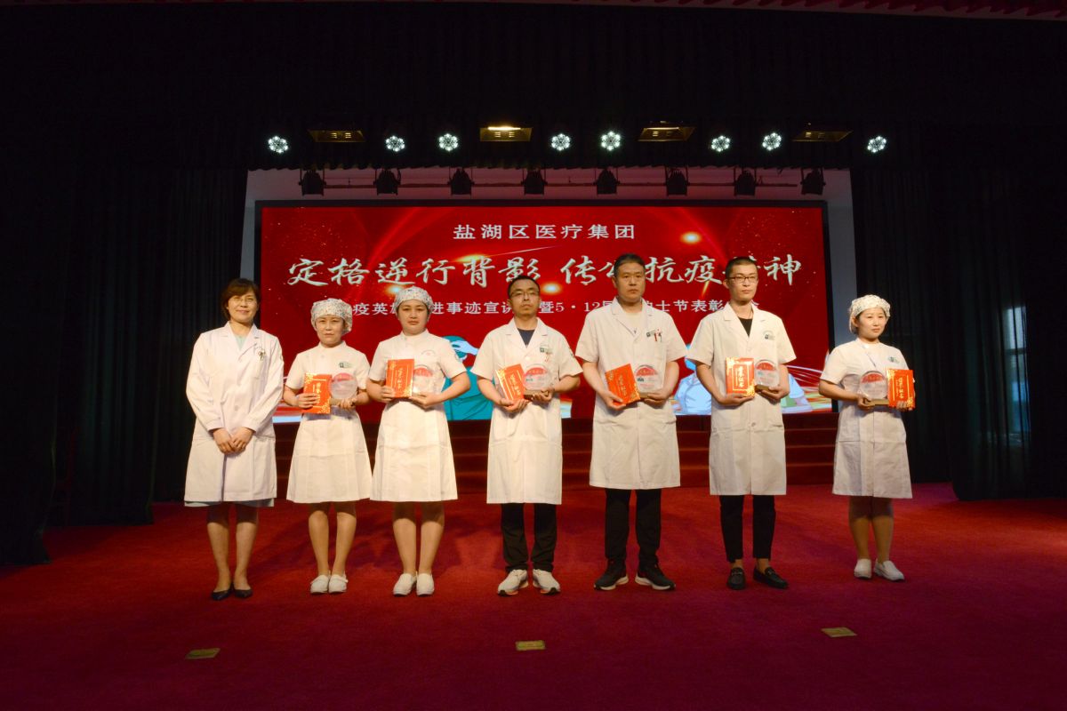 运城晚报讯 5月11日,盐湖区医疗集团召开“定格逆行背影 传颂抗疫精神”——抗疫英雄先进事迹宣讲会暨“5·12”国际护士节表彰大会。集团、医院领导班子,各基层医疗卫生机构负责人、医护代表等150余人参加。
