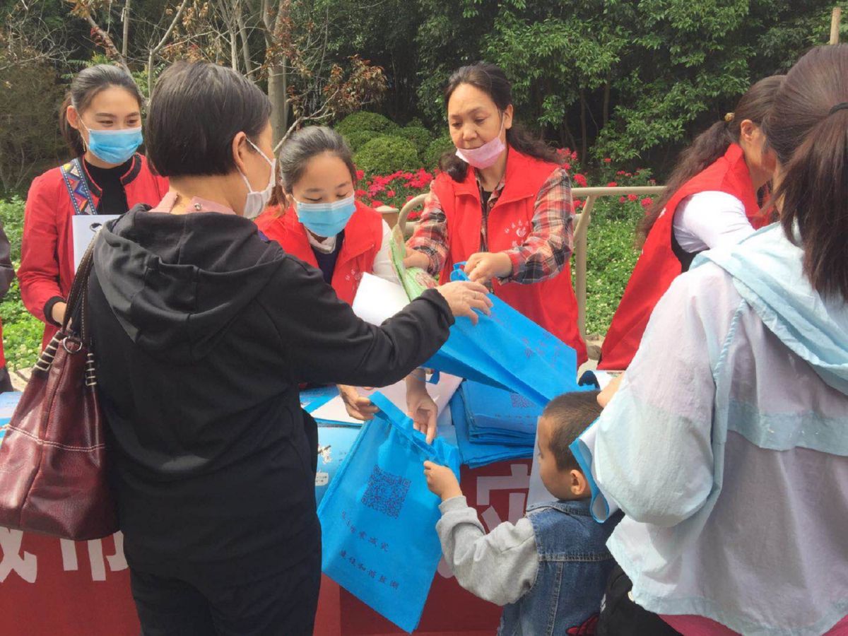 ▲社区工作人员向居民发放宣传资料 刘凯华 摄