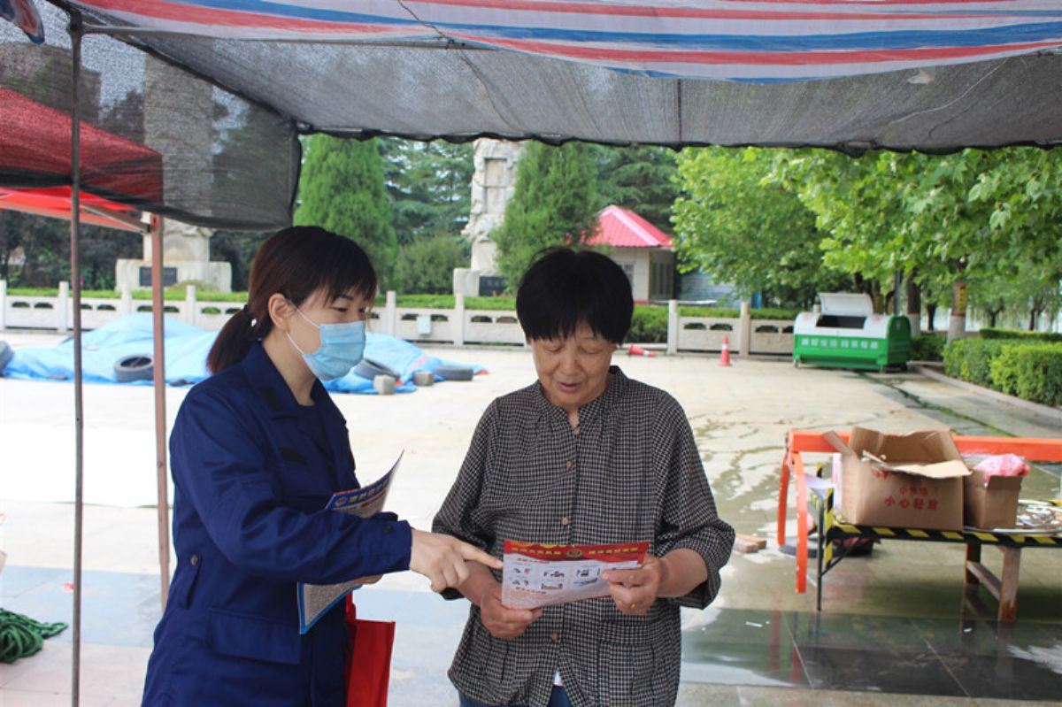 ▲宣传人员向群众讲解消防安全常识 寻霄 摄