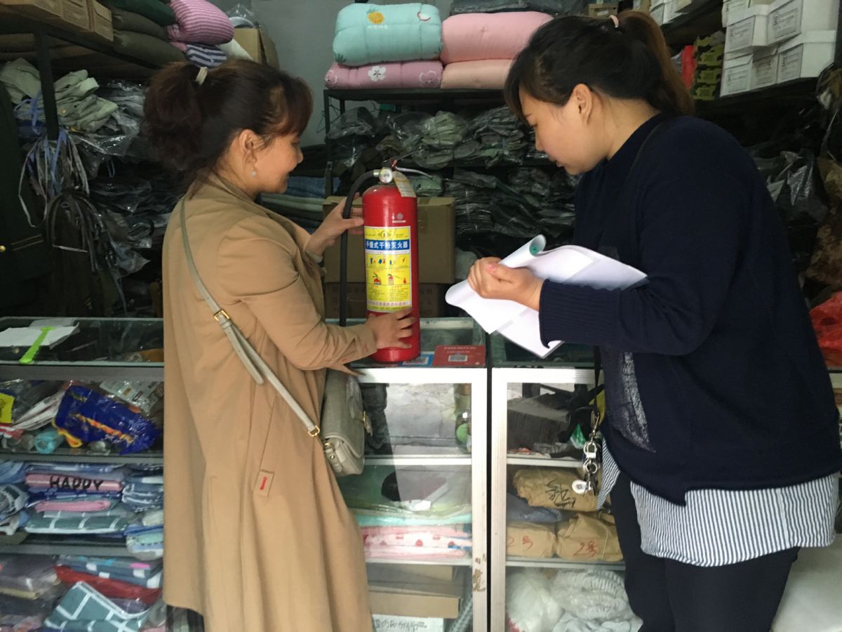 在检查中,社区工作人员分片区对辖区门店进行地毯式摸排检查,重点检查门店安全设施是否配备齐全,灭火器是否在有效使用期限内,餐饮后厨操作室内燃气及用电是否存在安全隐患;要求他们做好卫生工作,保持店内干净整洁;对存在安全隐患的门店现场告知,并要求其门店负责人立即实施整改,给门店发放安全生产宣传资料,检查门店的禁烟标识,做好禁烟控烟的宣传。