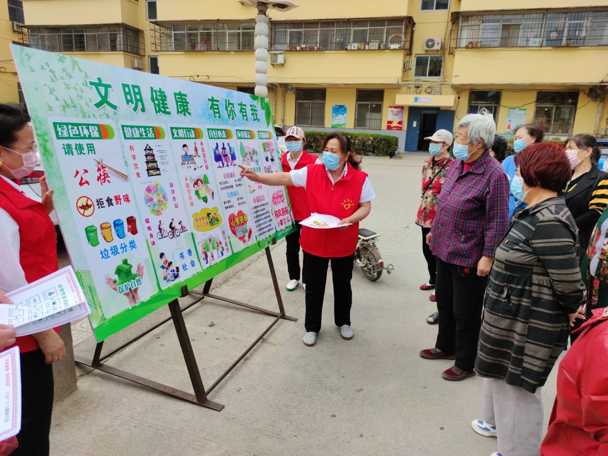 活动中,社区工作人员及志愿者紧扣“文明健康,有你有我”宣传主题,在辖区悬挂条幅,为居民发放宣传页,设立宣传展板,通过LED电子屏和便民微信群,向居民宣传绿色环保、健康生活、文明行为等内容,弘扬社会文明风气。社区主任丁文静为居民详细介绍了文明健康生活的日常注意事项,明确“每个人是自己健康的第一责任人”。