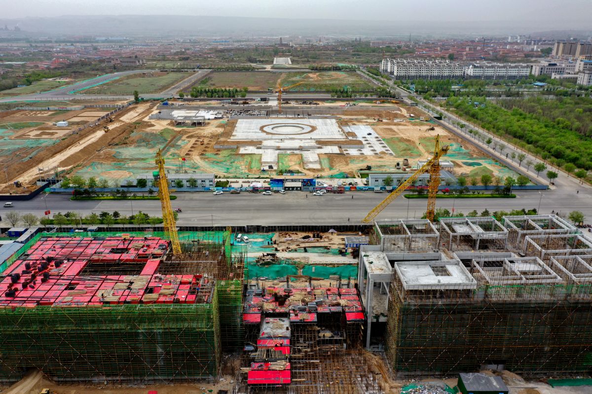 俯瞰建设中的新绛县新城中心广场建设项目 特约摄影 宋 磊 摄