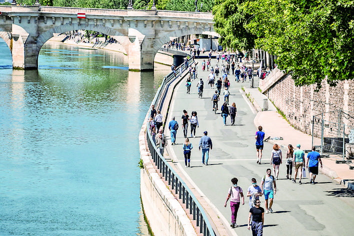 ▶5月17日,在法国巴黎,人们在塞纳河畔享受阳光。 法国卫生总署17日发表新闻公报说,法国新冠死亡病例升至28108例,在过去24小时内增加483例。法国自5月11日起逐步解封。 新华社发