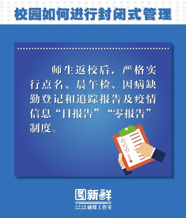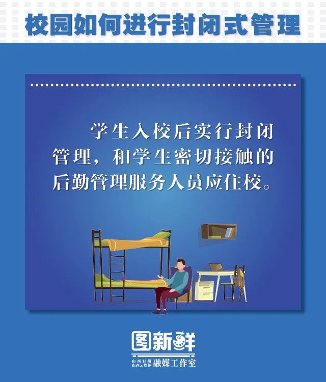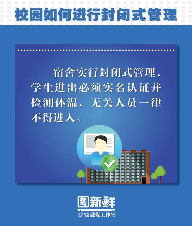 以5月18日为起点,全省高校按照分期分批、分省域错时错峰返校复学的原则,自主确定其他年级学生具体返校日期。按照我省安排,继续实行校园封闭式管理。