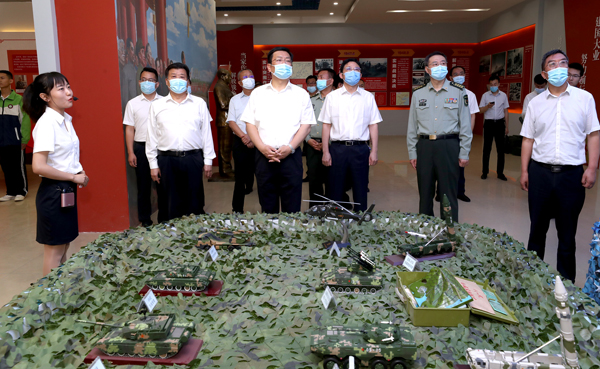 盐化中学是我市国防教育示范基地,学校依托国防教育展厅,大力开展国防教育进课堂,传承红色基因,厚植爱国情怀。丁小强、储祥好参观了国防教育展区和活动实践区后指出,要把国防教育与爱党、爱国教育结合起来,让广大师生通过国防教育,进一步深刻认识历史和人民选择中国共产党、选择马克思主义、选择社会主义道路、选择改革开放的历史必然性。2019年国庆大阅兵党旗护旗手李国震正在帮助盐化中学训练国旗护卫班。当听说退役后的李国震坚持自主创业时,丁小强勉励他,男儿当自强,退役不褪色,努力为家乡经济社会发展贡献力量。