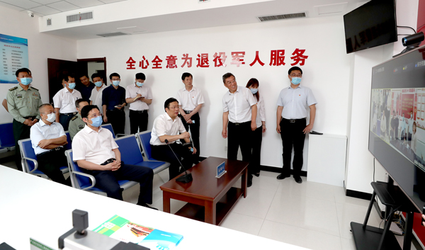 在市退役军人事务局服务中心,丁小强、储祥好与前来办事的退役军人亲切交谈,了解他们的安置情况和就业去向,并与万荣县皇甫乡退役军人服务中心管理人员视频连线,了解基层工作开展情况。丁小强指出,要强化政策落实,优化安置方式,拓宽就业渠道,加强创业扶持,面对面、心贴心,用心用情做好退役军人服务工作,真正把服务中心打造成退役军人的安心、舒心之家。