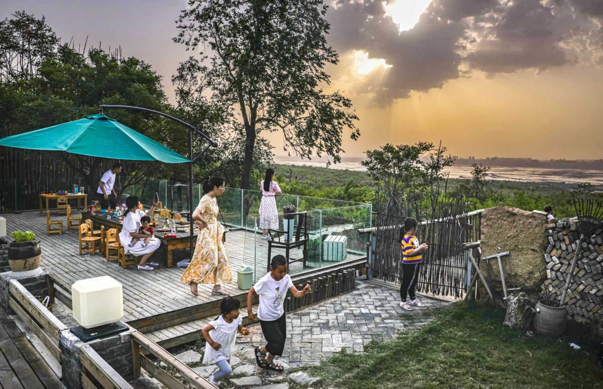 5月17日,市民在盐湖区东郭镇乡遇刘范民宿艺术村休闲度假。