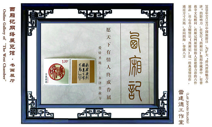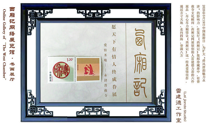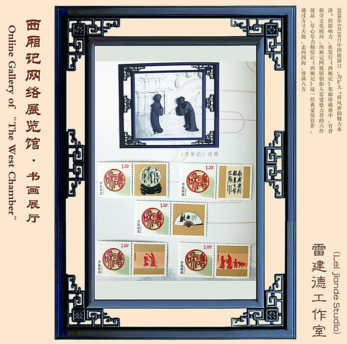 据悉,雷建德工作室“西厢记网络展览馆”一组六件展品,曾以中法两种文字入选《法国邮票印象——中国殿堂级艺术家篇章》,让富有中国特色的西厢文化登上了法国邮票,亮相“浪漫之都”巴黎。此次,同样有六件展品特别选入中国邮票,系雷建德先生择优而选。