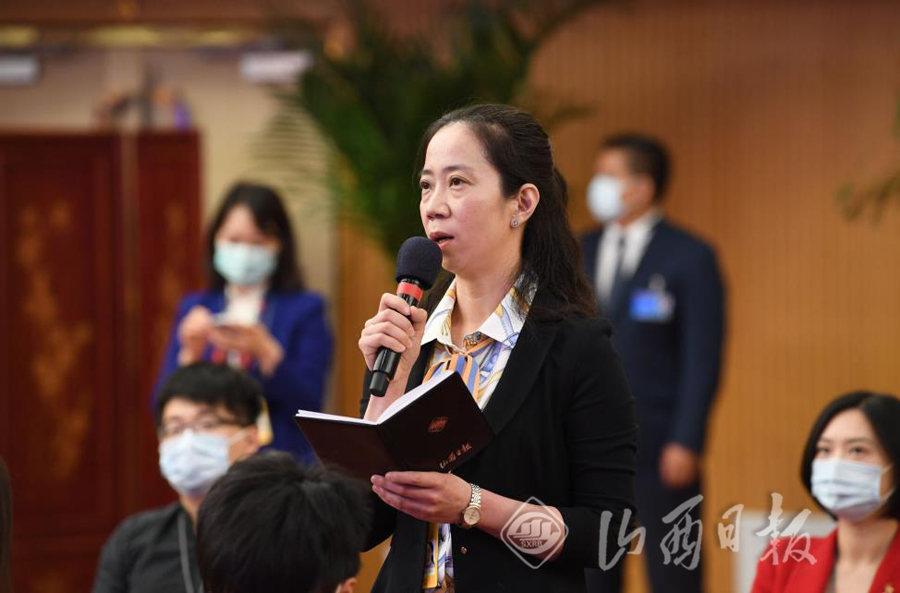 山西代表团王润梅代表在首场“代表通道”通过视频接受记者采访