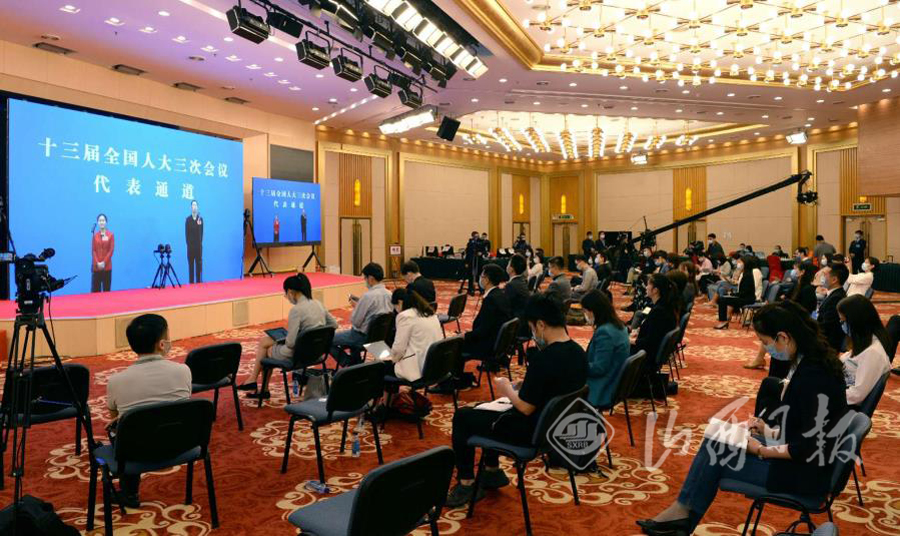 今年的“代表通道”由往年的集中采访改为视频方式进行。首场活动邀请6名代表,分三组接受采访。