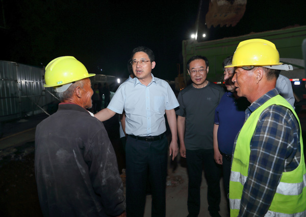 储祥好在解放路道路提升改造施工现场,督查工程进展,看望一线施工人员。记者 闫鑫 摄
