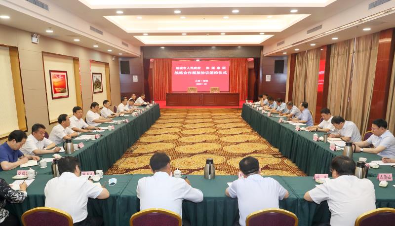 在市委书记丁小强,市长储祥好,市委常委、市委秘书长乔登州,阳煤集团董事长翟红、副总经理聂建民,深圳市雄韬电源科技股份有限公司董事长张华农等共同见证下,副市长崔元斌、阳煤集团总经济师冯志武代表双方签署战略合作框架协议。