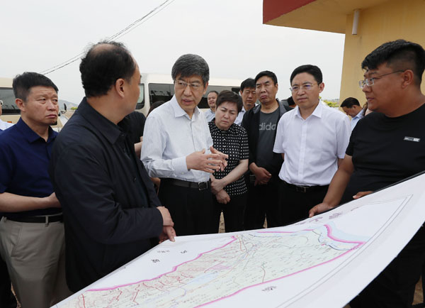 张瑞鹏一行在涑水河入黄口水生态修复工程调研 记者 闫鑫 摄