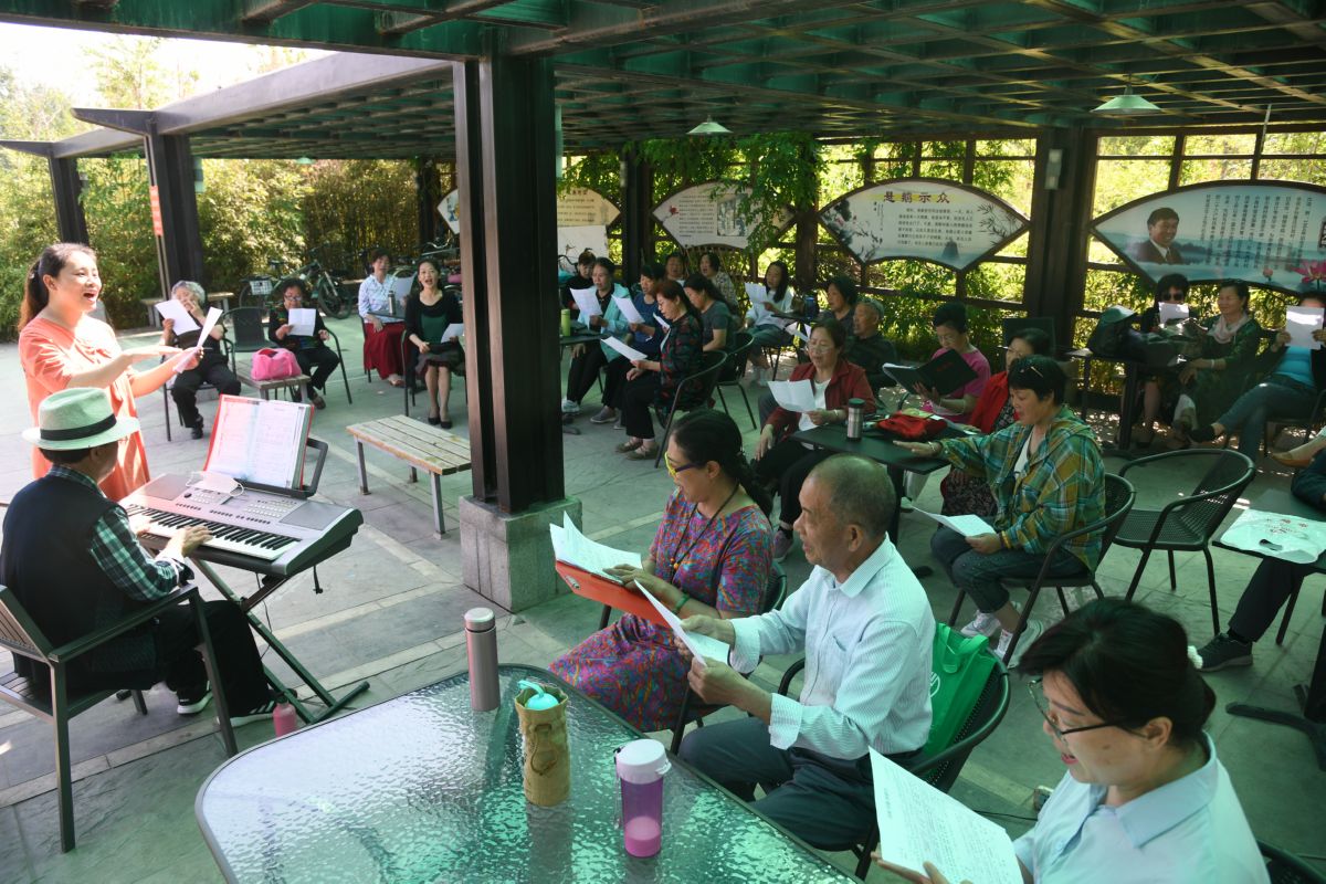5月24日,50余名来自闻喜县老年体协党支部、老干部志愿团、涑水公园的志愿者、保安和环卫工人,在涑水公园便民服务中心,用心唱响他们新创作的歌曲《闻喜闻喜我爱你》,鼓舞大家热爱闻喜、建设闻喜。 特约摄影 张德福