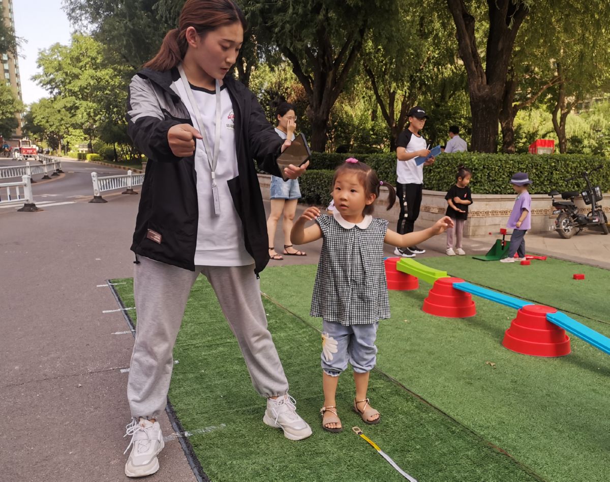 据了解,“蜈蚣竞赛板”测试,既锻炼孩子的动作发展能力,还测试了孩子团队合作能力。“平衡器材”测试,通过游戏锻炼孩子的平衡感和肢体协调能力,增强孩子的勇气和胆量。“彩虹过河石”“灵敏跨栏训练”“跳跳袋数字跳”等环节从灵活度、速度、平衡力等方面对孩子进行测试,趣味测试则让孩子边玩边体验运动的乐趣。