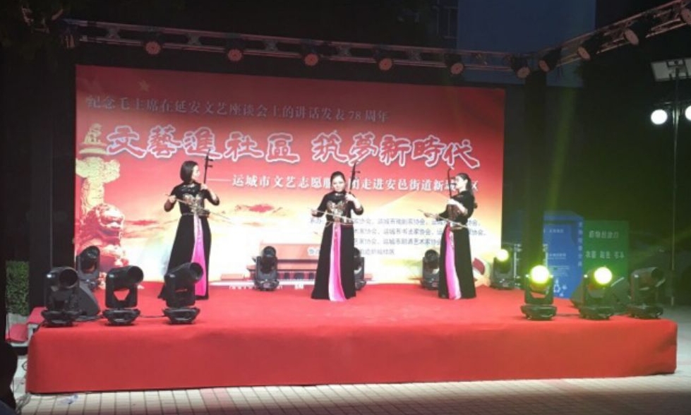 运城晚报讯(记者 樊亚楠)5月22日,盐湖区安邑办新城社区联合市文联开展“文艺进社区 筑梦新时代”活动,十余名文艺志愿者为社区居民送来欢乐。