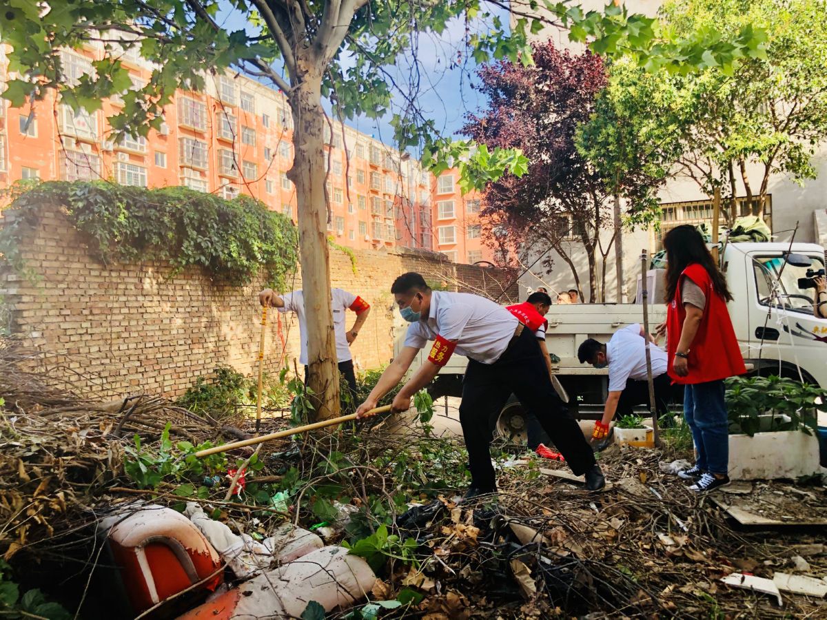 ▲党员对小区内花带进行清理 祁克宁 摄