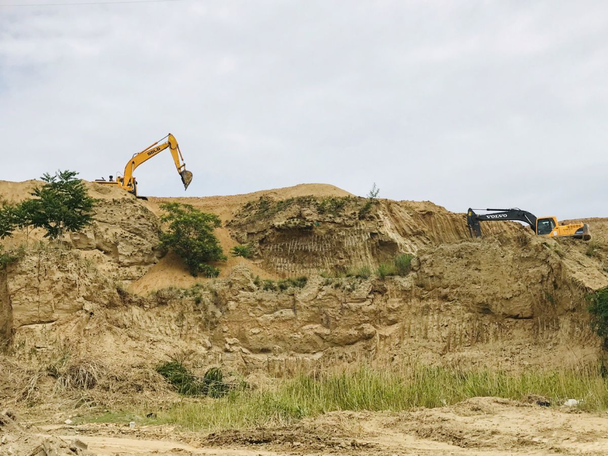 ▲4分区现场,挖掘机正对坡体进行修整。 王棉 摄