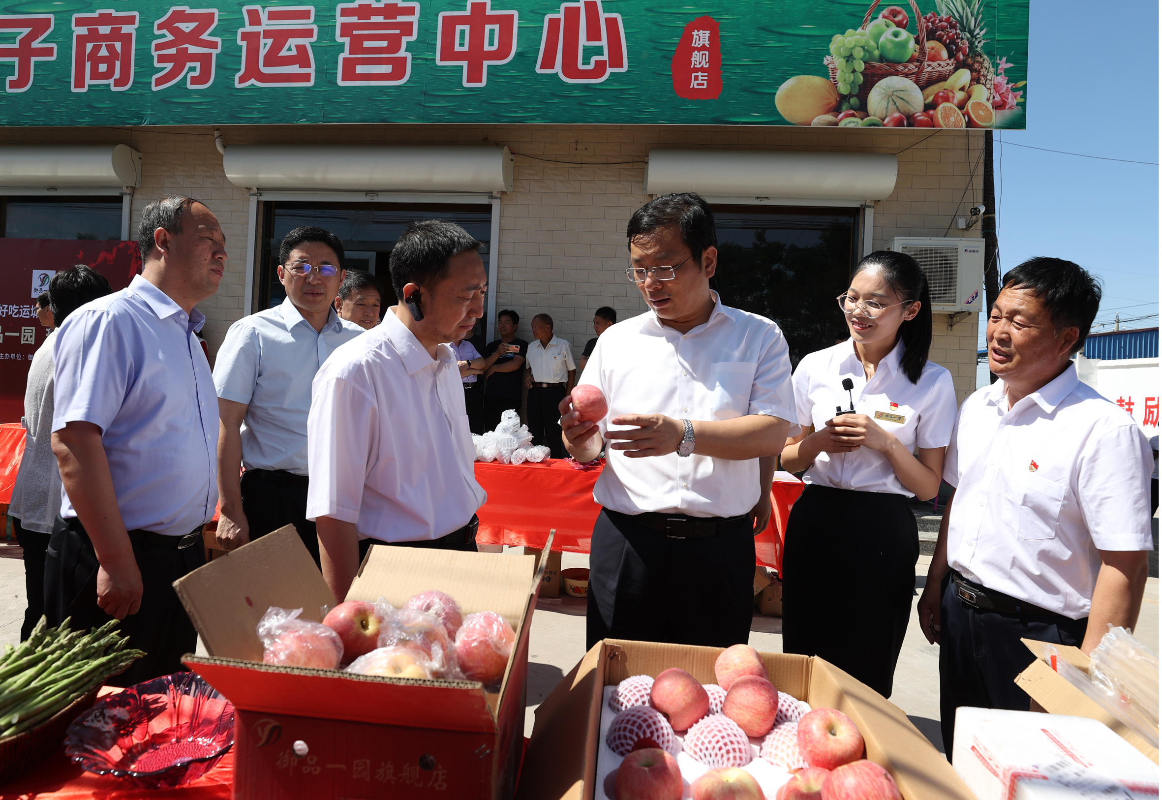 会前,丁小强、储祥好带领与会人员,现场调研观摩了临猗国家苹果产业体系试验站、国家苹果全产业链大数据集成中心、王万保果品种植专业合作社、御品一园电子商务运营中心、国家现代苹果产业示范基地、农文旅融合设施鲜枣示范基地等。