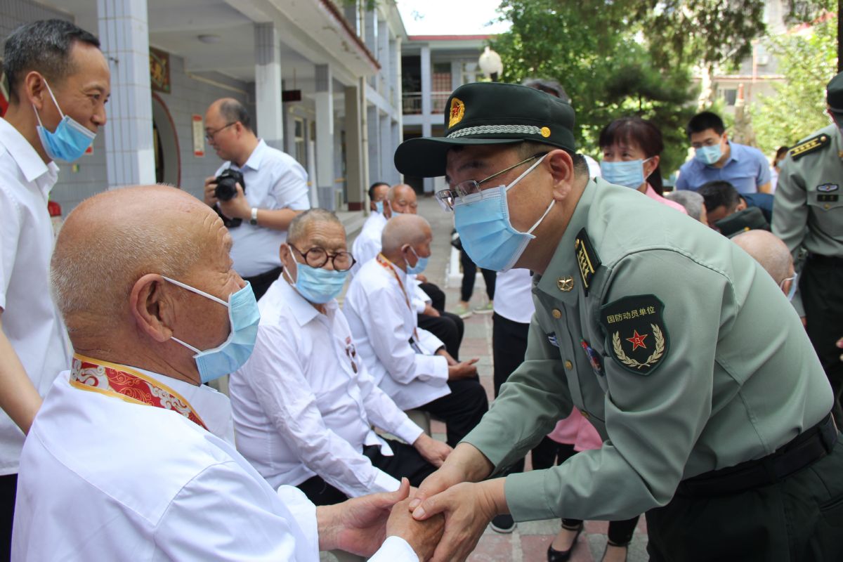 ▲山西省军区政治工作局副主任、省双拥办副主任李洪,亲切慰问我市退役军人事务局光荣院的老军人。 杜磊 摄