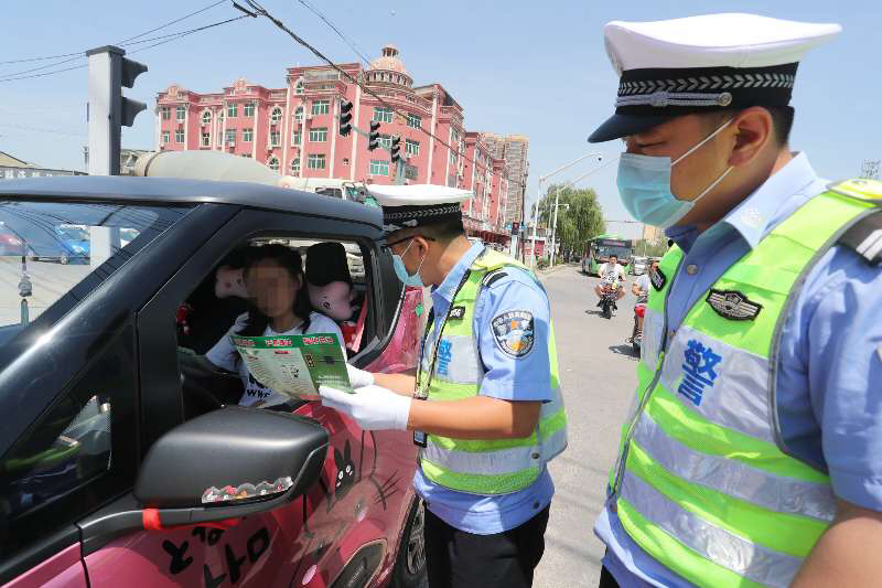 5月26日,盐湖公安交警大队一中队民警在桃源岗劝导教育驾驶无牌四轮低速电动车车主。
