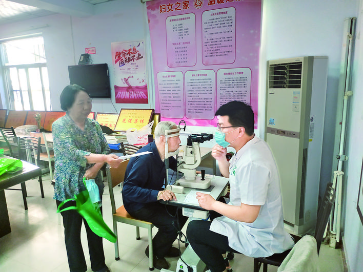 ▲大夫在给居民做眼部检查 刘凯华 摄
