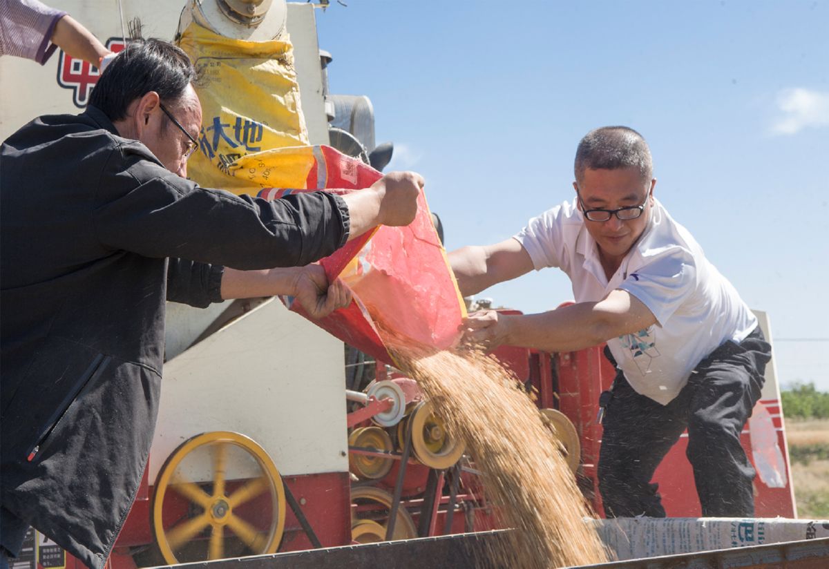 5月26日,万荣县皇甫乡登科农机服务专业合作社,在为马家庄村贫困户杨怀枝老人收割小麦。当日,82岁杨老太太的8亩小麦由托管队及时收割,两车金灿灿的小麦全部送到院内。