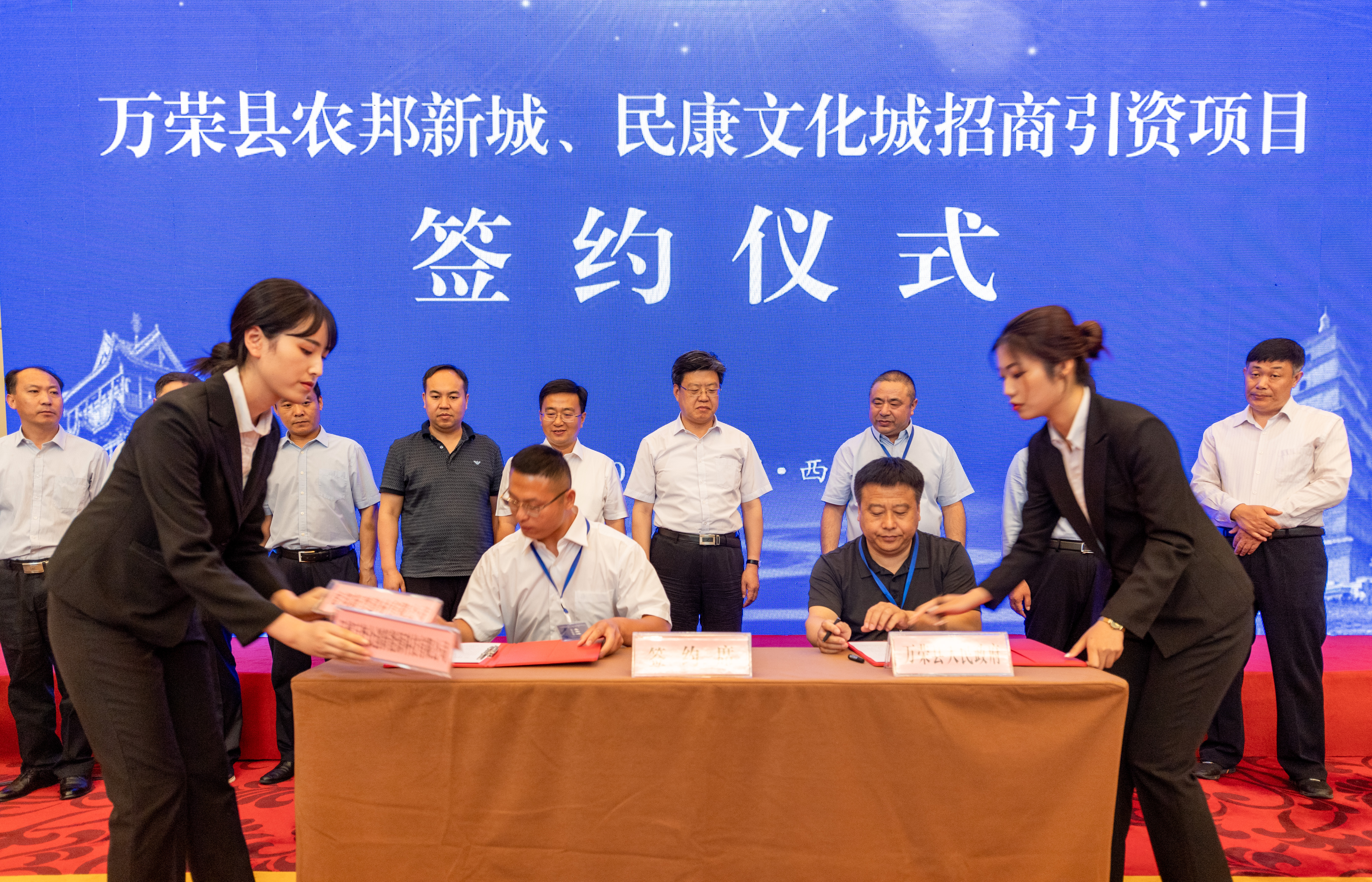 同日成立的山西省万荣县驻陕西招商引资服务中心,将成为该县扩大招商引资的又一新引擎。 据介绍,农邦新城、民康文化城项目是万荣县推动城市高质量发展的具体实践。农邦新城项目按照“四带四区”结构布局,规划实施现代果业科技创新推广示范基地、农邦主题文化旅游街区、百果园、百果社区等,打造兼容华夏农耕文明、现代农业魅力和产城融合活力的城市片区;民康文化城项目按照“三带三区”格局,规划实施“四馆一中心”、医养融合社区、中药材产品博览中心等,旨在将万荣城东片区打造成为区域医药产业发展高地、群众健康生活福地及生态休闲胜地。