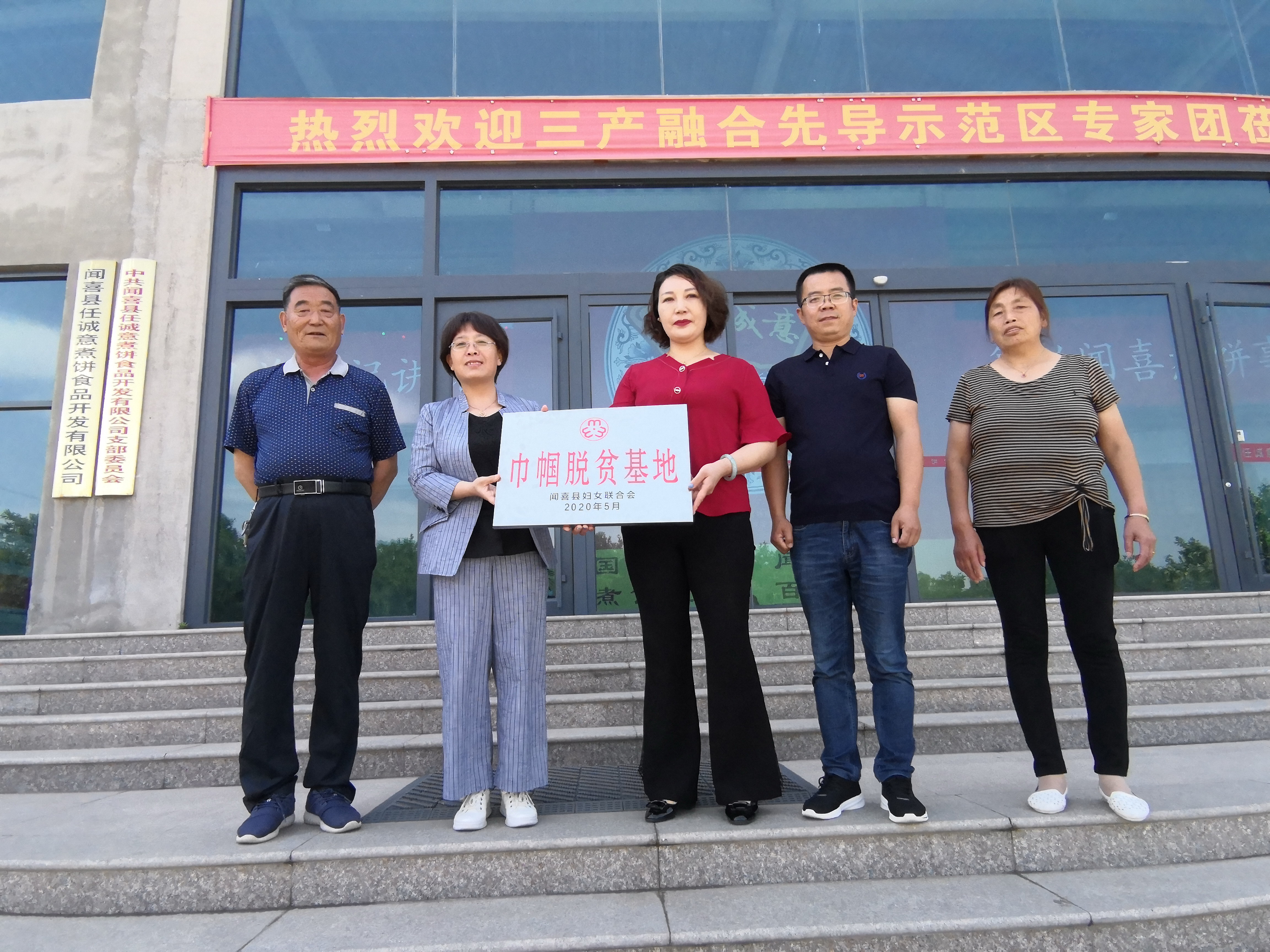 5月26日,闻喜县妇联为闻喜任诚意煮饼食品开发有限公司授予“巾帼脱贫基地”牌匾。 近年来,闻喜任诚意煮饼食品开发有限公司始终坚持“以质量求生存,以信誉求发展”的服务理念,在把闻喜煮饼这一传统食品产业做大做强的同时,吸收了本县100余名农村贫困家庭妇女就业,让她们在家门口上班,既照顾了家庭,又挣到了钱。据悉,她们中90%的家庭,已甩掉了贫困户的帽子,实现脱贫致富。刘中青 摄