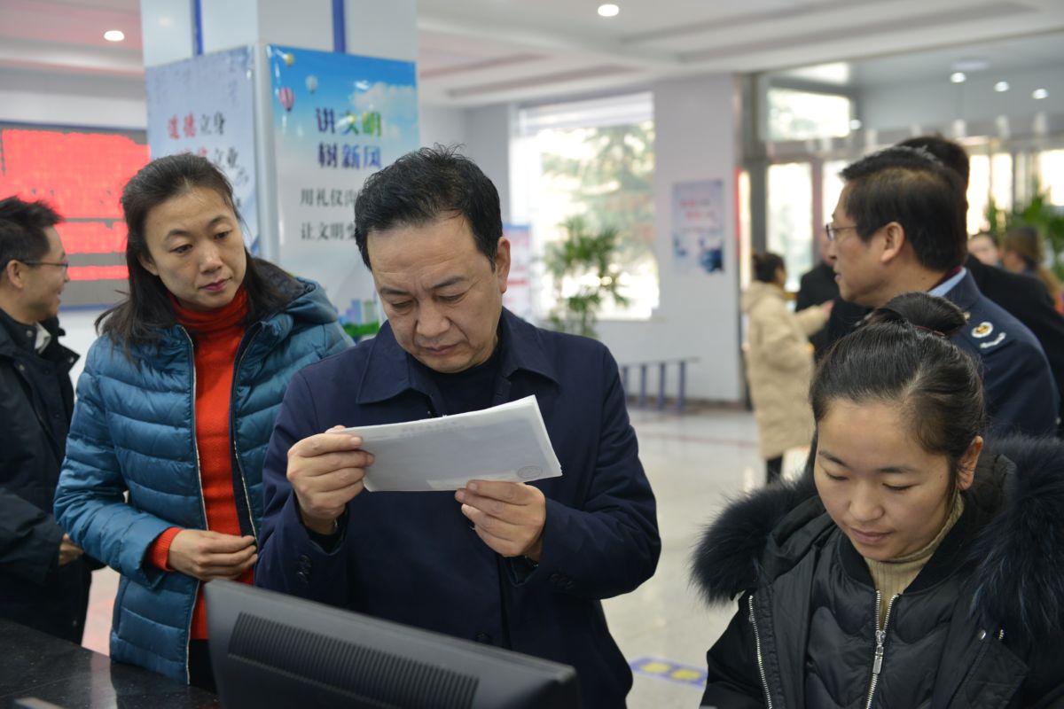 ▲国家税务总局运城市税务局党委书记、局长郭开立在办税服务厅调研。(资料图片)