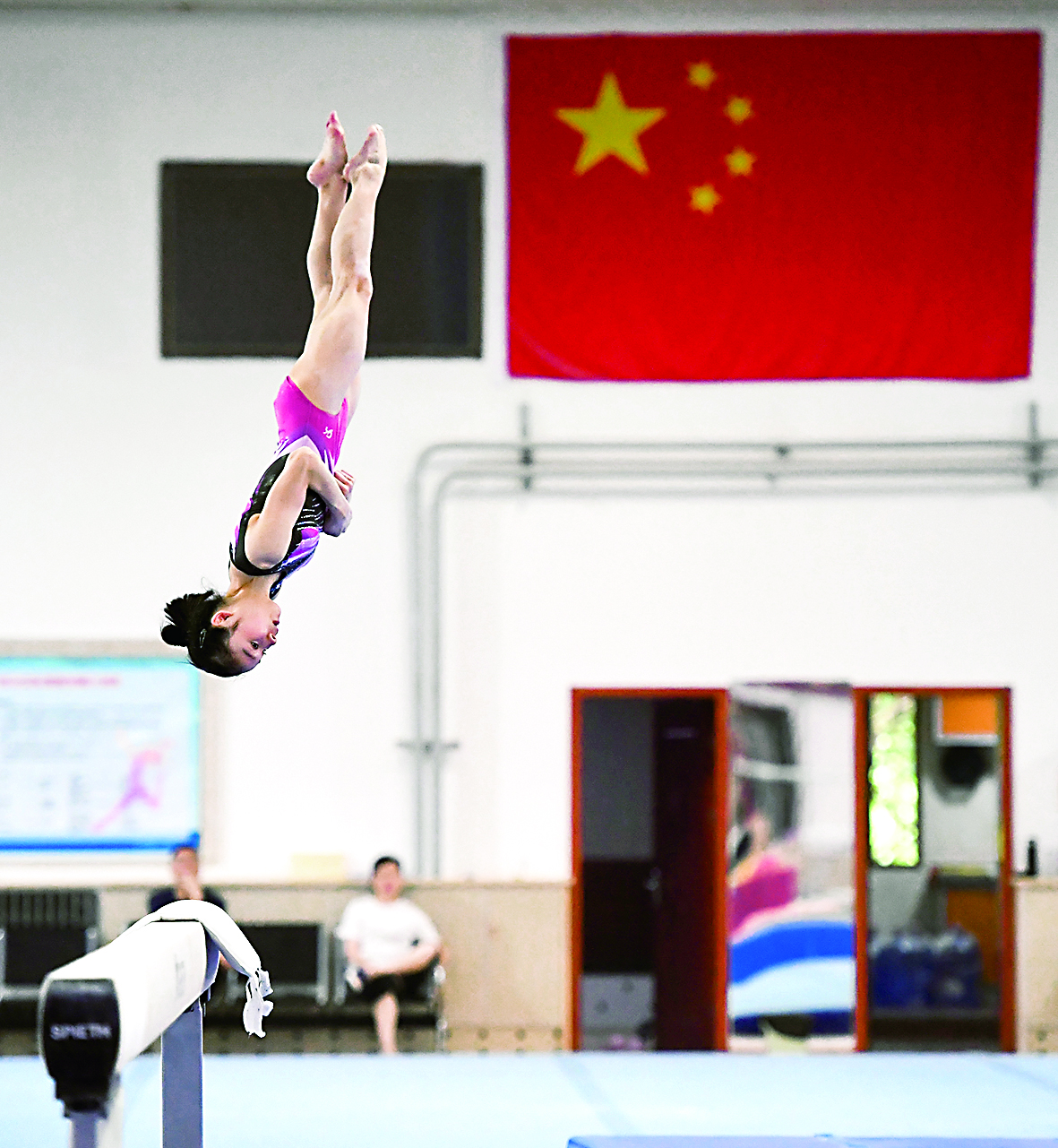 ▶6月2日,湖南省体操队队员杨书涵在训练中。 近日,在位于长沙的湖南省体操运动管理中心,湖南省体操队在做好疫情防控的前提下抓紧时间训练,全力备战2021年全运会等比赛。