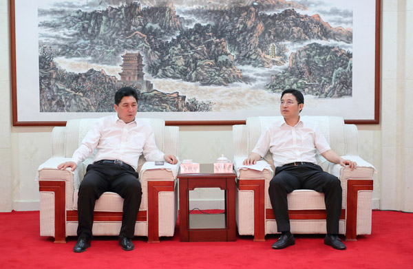 储祥好与中冶交通建设集团有限公司总经理冷铁松一行举行工作会谈。记者 闫鑫 摄