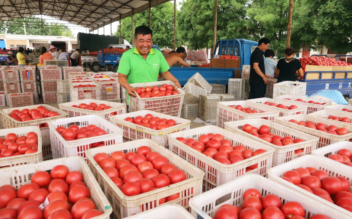 6月2日,夏县庙前镇杨村村民在将新采摘的西红柿分选入筐,准备发往市场。