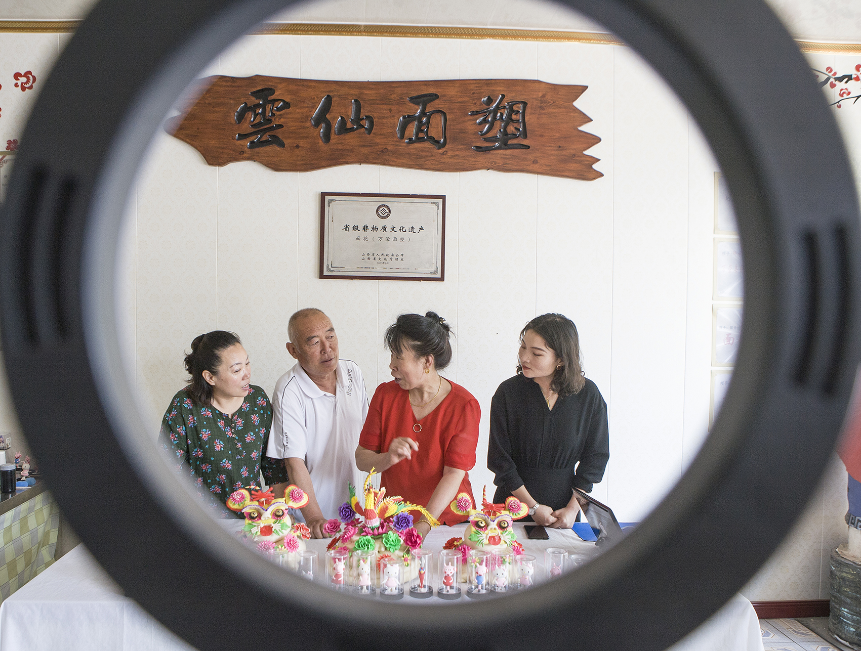 5月30日,万荣县文化馆到省级非物质文化遗产传承人解云仙的面塑店进行网络直播。 当晚,两个多小时的现场直播,拉开了该县“万荣非遗走进抖音直播间”的帷幕。随后,该县文化馆将组织网络抖音演播拍摄能手,对全县的62个县级以上非物质文化遗产项目,分期进行抖音直播,以群众喜闻乐见的形式,让非遗走进百姓生活,进一步弘扬传承优秀传统文化。特约摄影 李克荣