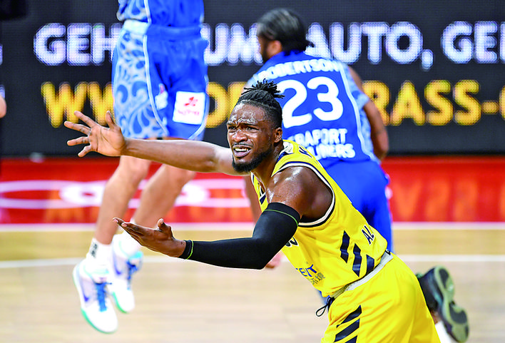 德国篮球职业联赛(BBL)在停摆了近3个月后于6月6日重启,各球队集中到慕尼黑,以空场杯赛的形式将本赛季进行完毕。新华社/路透