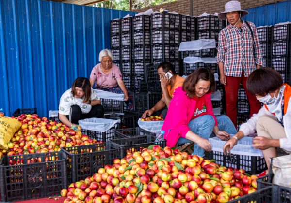 万荣县荣河镇周王村两委遵循“美丽乡村建设与产业化发展同步”理念,带领村民发展优质油桃3500余亩,并建成油桃交易市场,打通了桃农与市场对接的最后环节,方便全国各地客商、电商与桃农的面对面交易,保障了桃农的稳定收益。 李继旺 摄