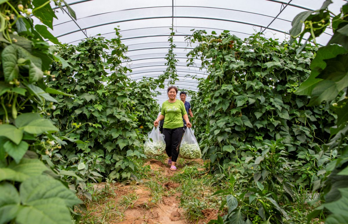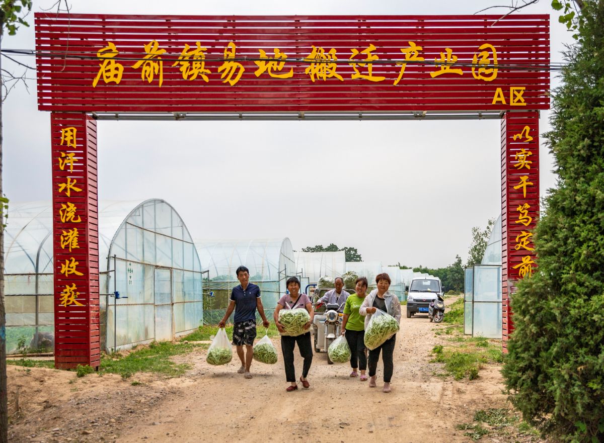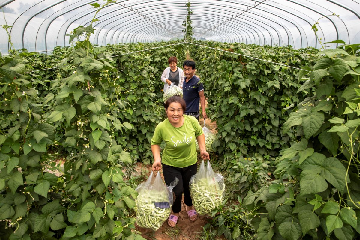 6月8日,夏县庙前镇易地搬迁“和谐家园”产业园的菜农们准备将刚采摘的豆角打包销售。