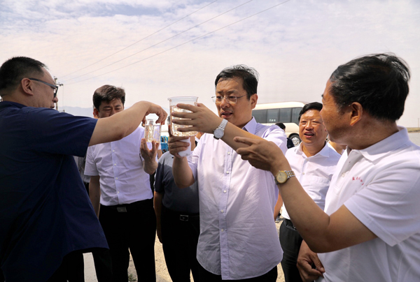 夏日的盐湖,芦苇青翠,水鸟翩翩。沿着坑洼不平的道路,丁小强实地查看盐湖生态现状、现存文物和遗址的保护。在盐湖东边的卤水虫养殖基地,丁小强仔细了解卤水虫养殖和利用,鸟类的种类、数量和保护等情况。他要求,加强盐湖中各类水鸟保护,严禁任意捕杀,让盐湖成为各类水鸟生活的天堂;科学合理做好卤水虫开发和利用,实现生态价值和经济价值最大化;清理、疏浚、整修盐池中补水渠道,推动生态补水和自然调蓄。在有百年历史的景德鑫盐号现存建筑前,丁小强要求,加强文物保护,活化利用工业遗产,深入挖掘其中蕴含的历史和文化价值,切实提升其历史文化的生命力和影响力。