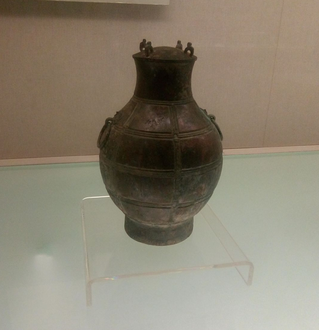 战国嵌红铜鸟兽纹三环钮盖壶(运城博物馆藏)