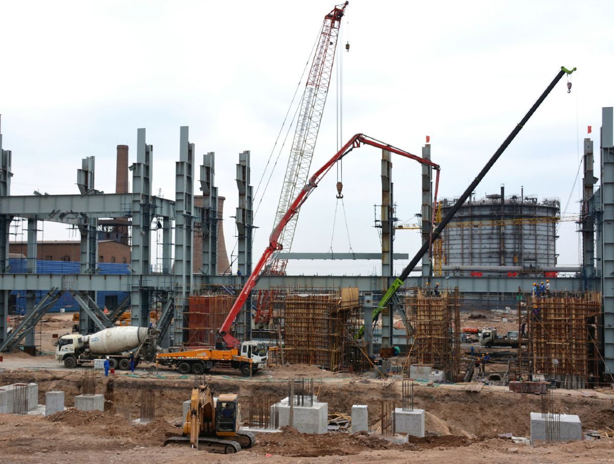 6月14日,山西宏达钢铁集团2×100吨精品钢项目施工现场,工人在紧张作业。